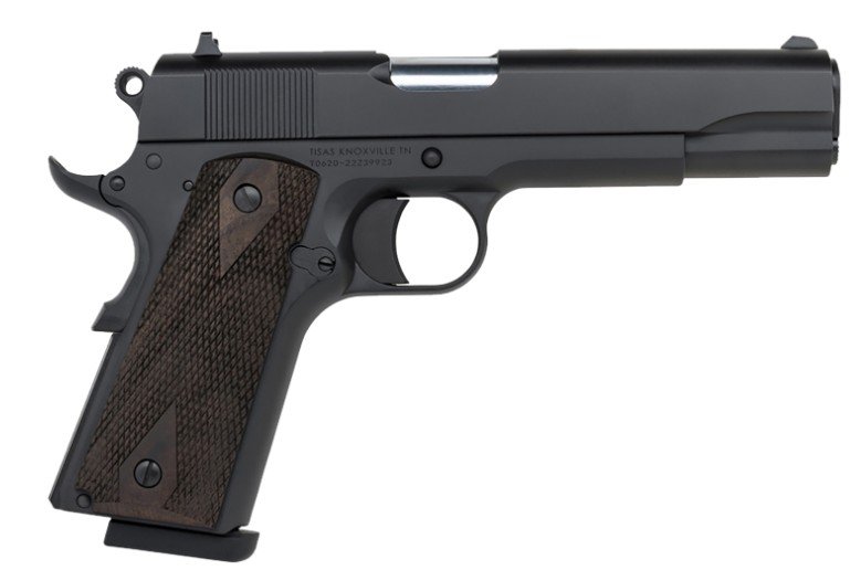 Tisas, MFG# 10100516, UPC: 723551441305, UOM: EA, 1911A1 Stakeout, .45 ACP, 5″ Barrel, Brass Bead Front Sights, Black, Walnut, (2) 8-rd, TISA, TISAHG10, TISAHGALL, HG10, HGALL